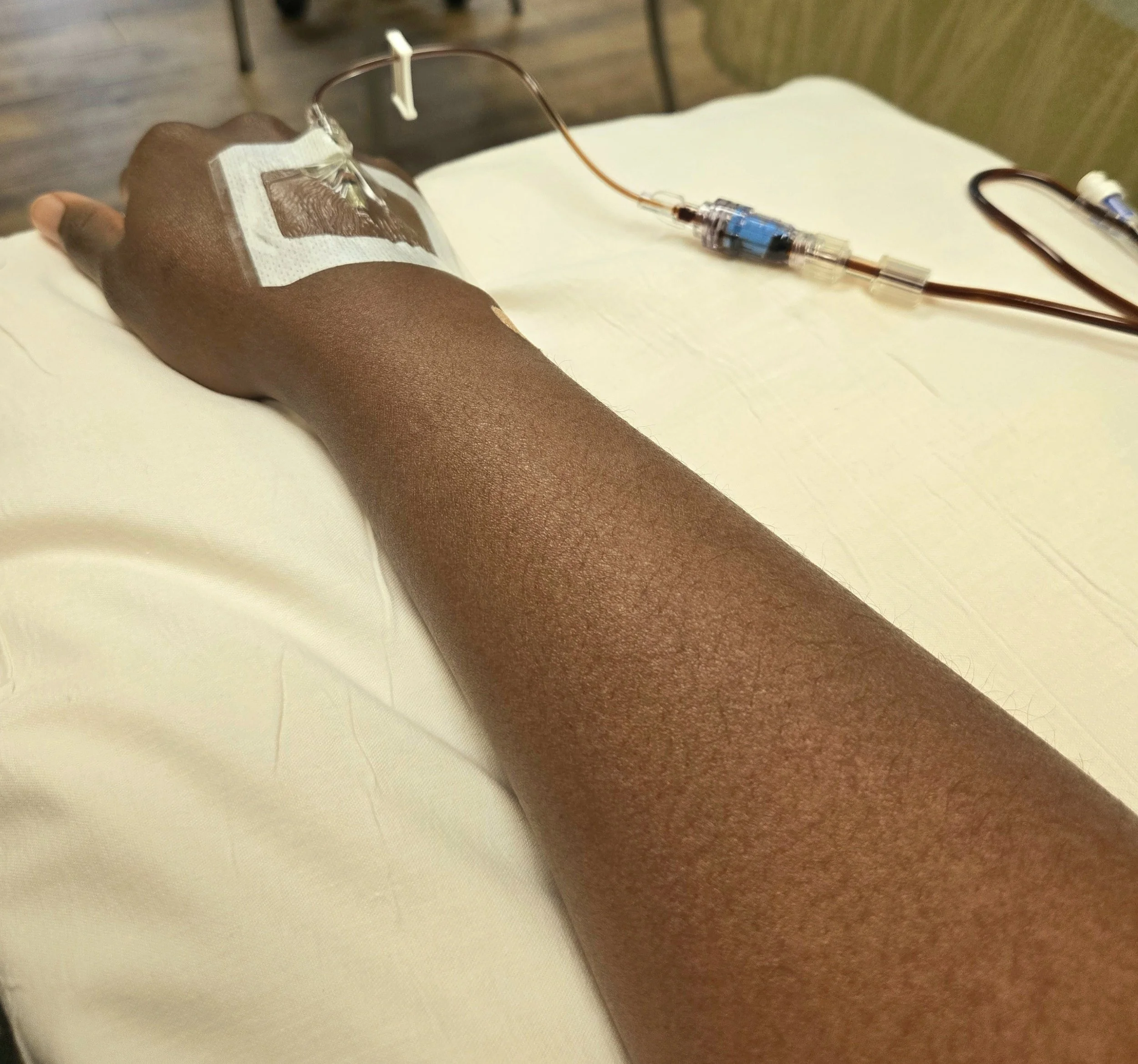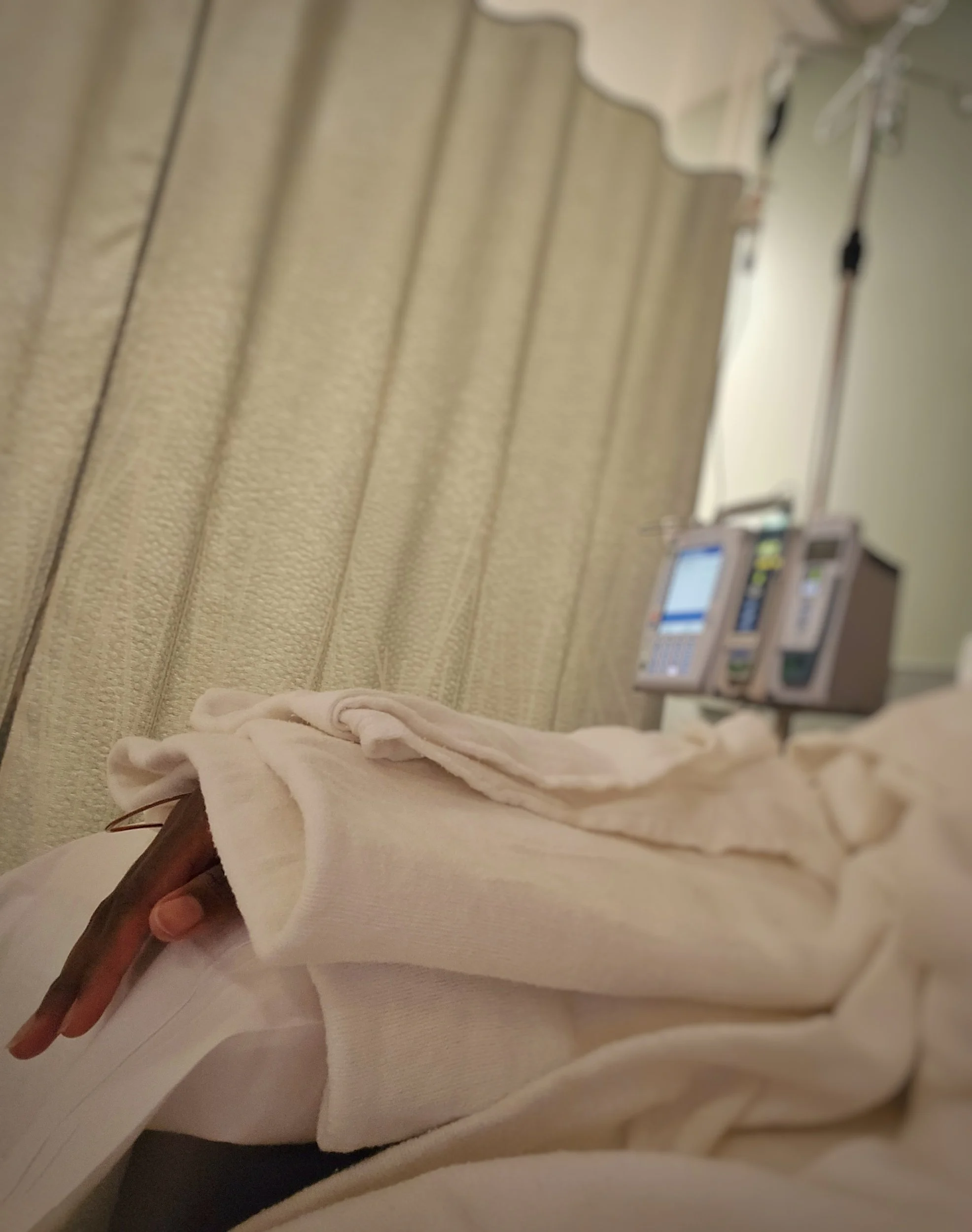 Dressing warmly was a must as someone with anemia who easily gets cold. Of course, your arms have to be accessible, but you can drape a sweater or jacket over you. I was fortunate to be at a facility that had warm blankets, and I only had to ask for more when needed. This was especially helpful on days when I had an IV in my hand.